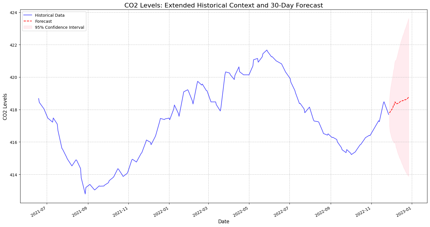 # Load and prepare the datasetdata = df_combined_inner.copy()co2_series = data['average_CO2'] # for such a short timeframe we don't really need all the features