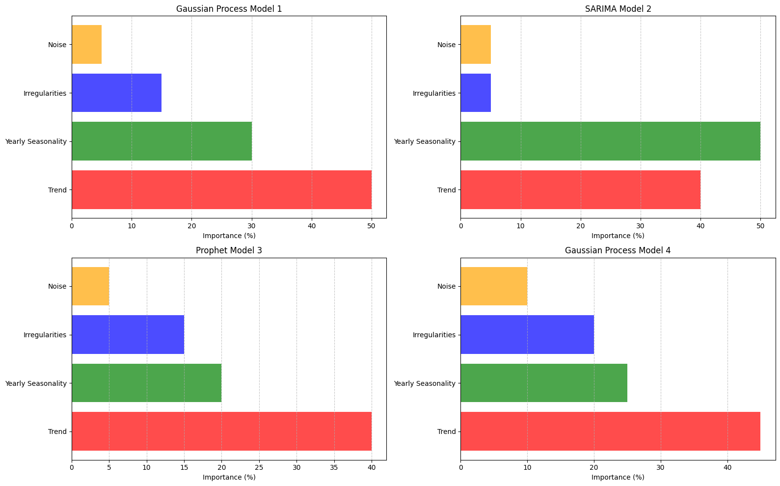 Gaussian Process Regression uses kernels to define how data points are related. Here we’re creating a sophisticated kernel that captures different aspects of CO2 data.
